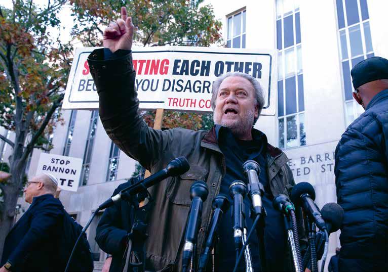 COMITÉ DA AL EXPRESIDENTE DE EU HASTA EL 4 DE NOVIEMBRE PARA PRESENTAR DOCUMENTOS; CONDENAN A SU ASESOR A CUATRO MESES DE CÁRCELFOTO: EFE ● SENTENCIADO. Steve Bannon, aliado de Donald Trump, habló al salir de la corte federal; fue condenado por desacato al Congreso.