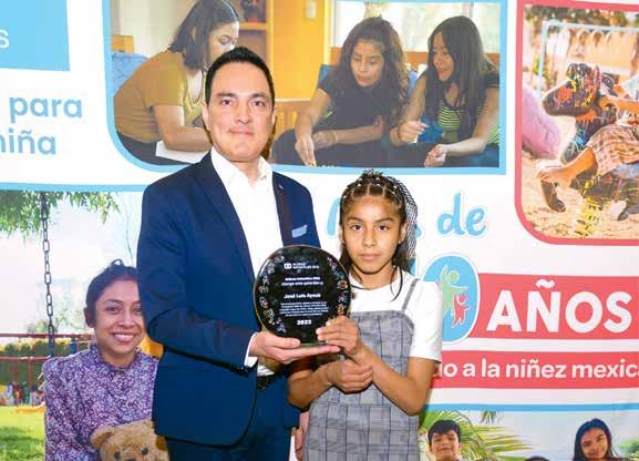 preocupa por apoyar niños, niñas y adolescentes”, destacó al recibir el galardón de manos de Mariana, de 10 años.