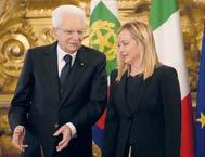 Meloni nombró ayer un go bierno que muestra su volun tad de mantenerse en buenos términos con la Unión Europea, la cual indicó a su vez su inten ción de "cooperar" con el nue vo ejecutivo en Italia. Designó como ministro de Relaciones Exteriores y viceprimer ministro a Antonio Tajani, expresidente del Parlamento Europeo, y puso al frente de la crucial cartera de Economía a Giancarlo Giorgetti.