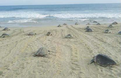 Lagartijas aladas, peces con patas de reptil o conejos con ore jas de elefante, entre otros seres fantásticos, fueron acompaña dos por la Banda de Música del Cuartel General del Alto Mando de la Secretaría de Marina y por más de 200 bailarines de 10 agru paciones.