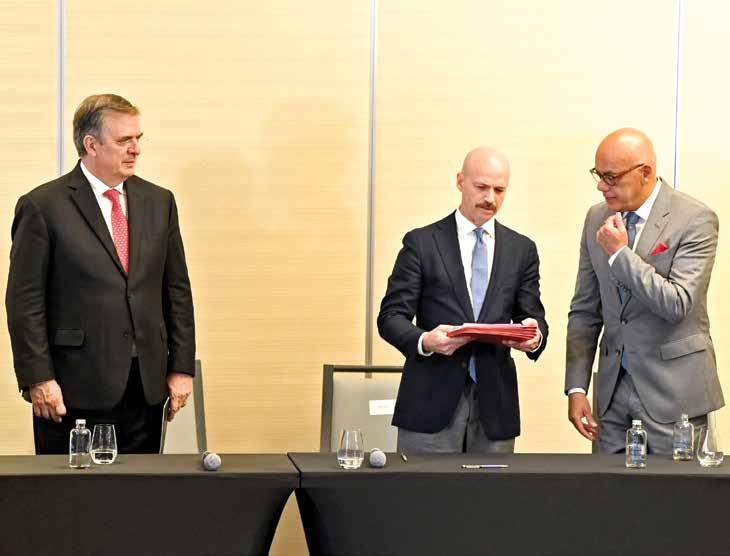 El secretario de Rela ciones Exteriores, Marcelo Ebrard dio la bienvenida a ambas delegaciones y les deseó que el diálogo permita alcanzar acuerdos en favor del pueblo de Venezuela.