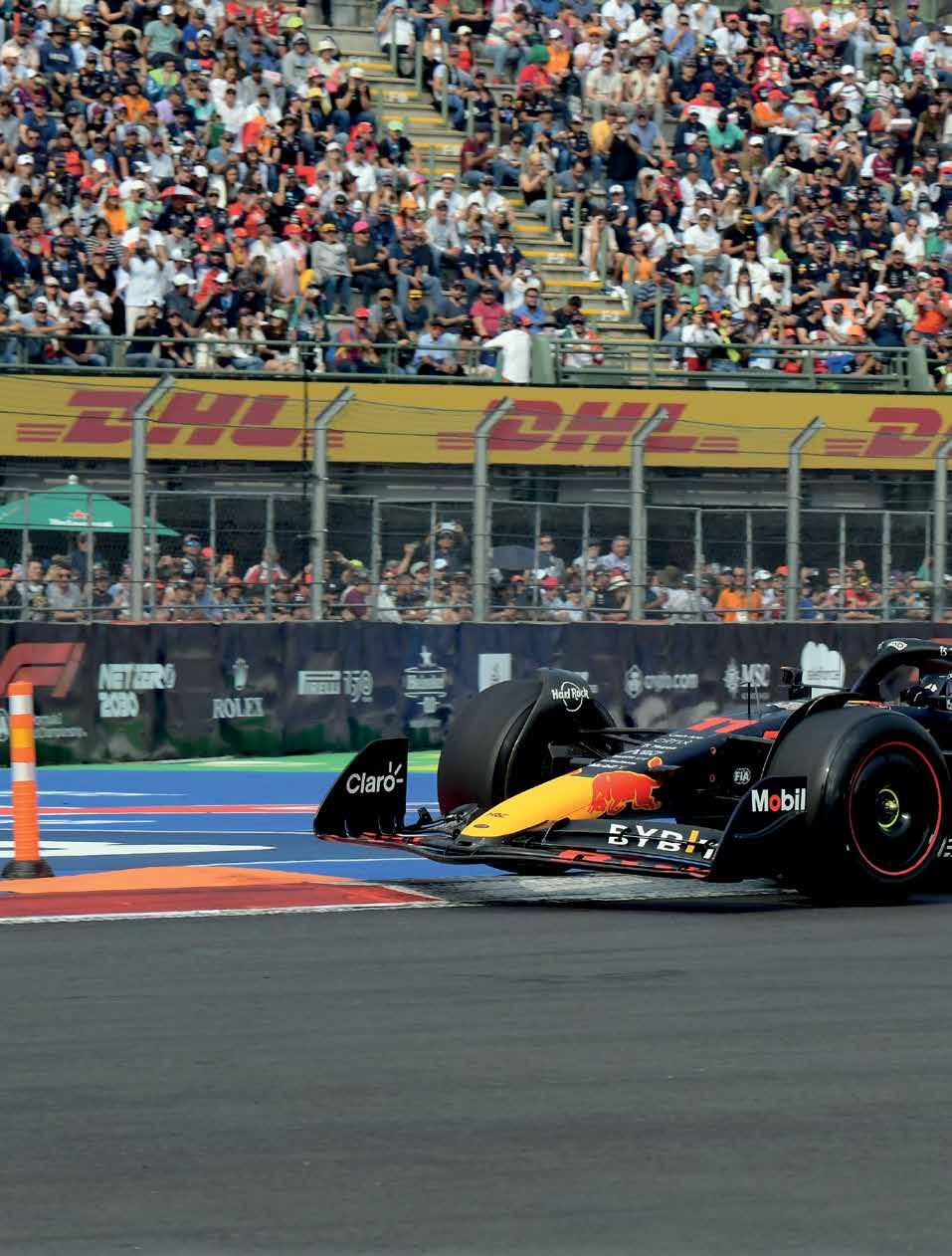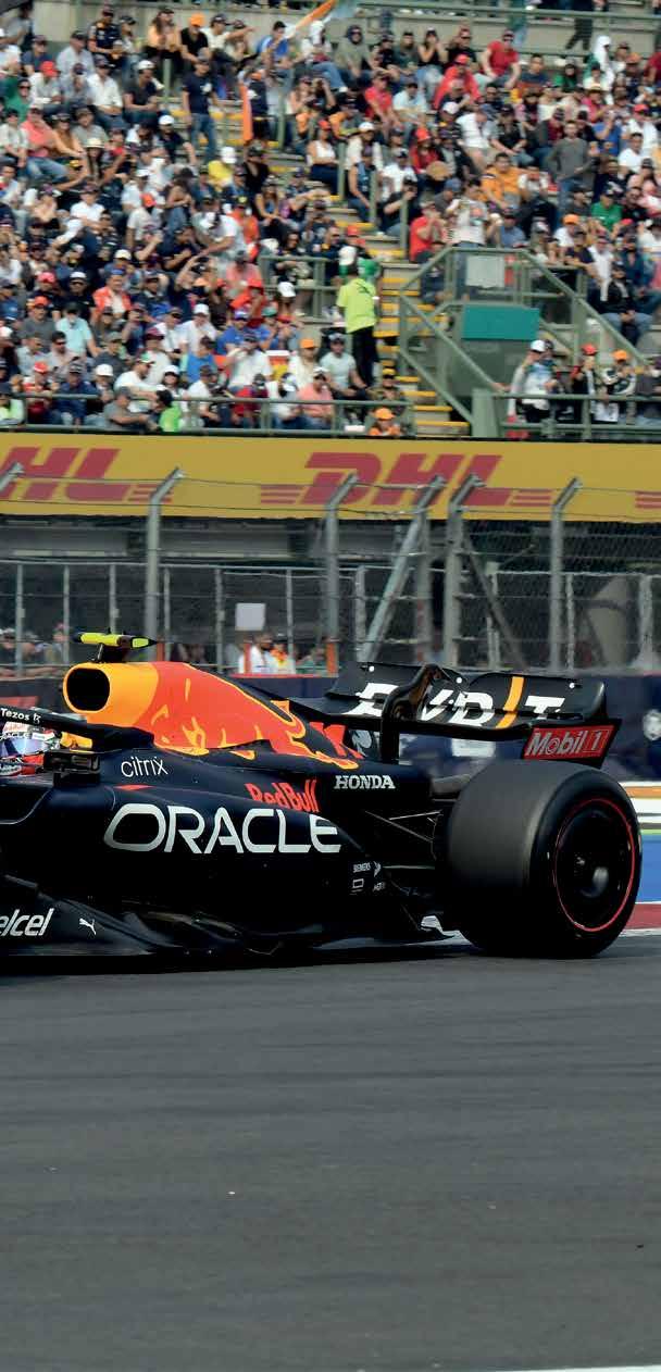 La entrada al garaje de Red Bull presume sellos de Campeo nes del Mundo. Ahí mismo se concentra un tumulto de gente, que espera pacientemente la apa rición de Checo (o Max) y sólo se dispersa por unos segundos cuando aparece otro piloto, como Daniel Ricciardo.