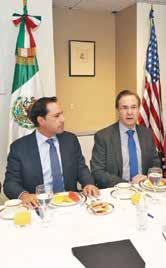 l El gobernador de Yucatán, Mauricio Vila, se reunió ayer con Esteban Moctezuma, embajador de México en Estados Unidos, y con empresarios del vecino país del norte, para presentar las ventajas competitivas y proyectos de su estado sobre el nearshoring. “Seguimos atrayendo empleos bien pagados para las familias yucatecas”, indicó el mandatario. REDACCIÓN