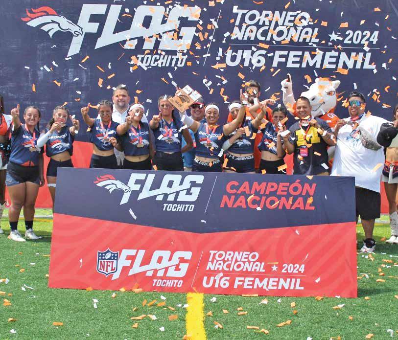 ● El equipo del Edomex ganó el Torneo NFL Flag Tochito 2024, organizado por la Fundación de Denver Broncos y NFL México, en la categoría U-16 femenil, tras vencer 32-19 a Chihuahua, torneo realizado en el Complejo Deportivo Kukulcán de la ciudad de Mérida REDACCIÓN