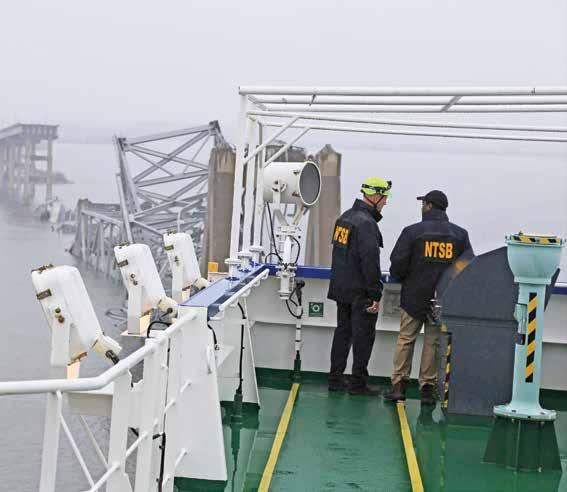 Los funcionarios de la Junta Nacional de Seguridad en el Transporte de EU abordaron el barco, el Dali, para recuperar información de sus dispositivos electrónicos y documentos, y hacer entrevistas.