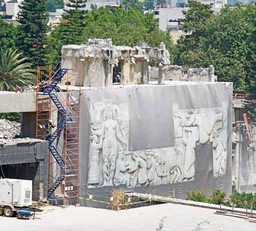 restaurar los paneles de un metro por un metro con los que se repuso la obra mural que resultó colapsada tras el sismo de 1985.