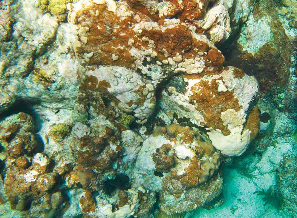 Este blanqueamiento se conoce como pérdida de tejido o síndrome blanco, que se ha extendido rápidamente por todo el Caribe afectando hasta 40 especies de corales.