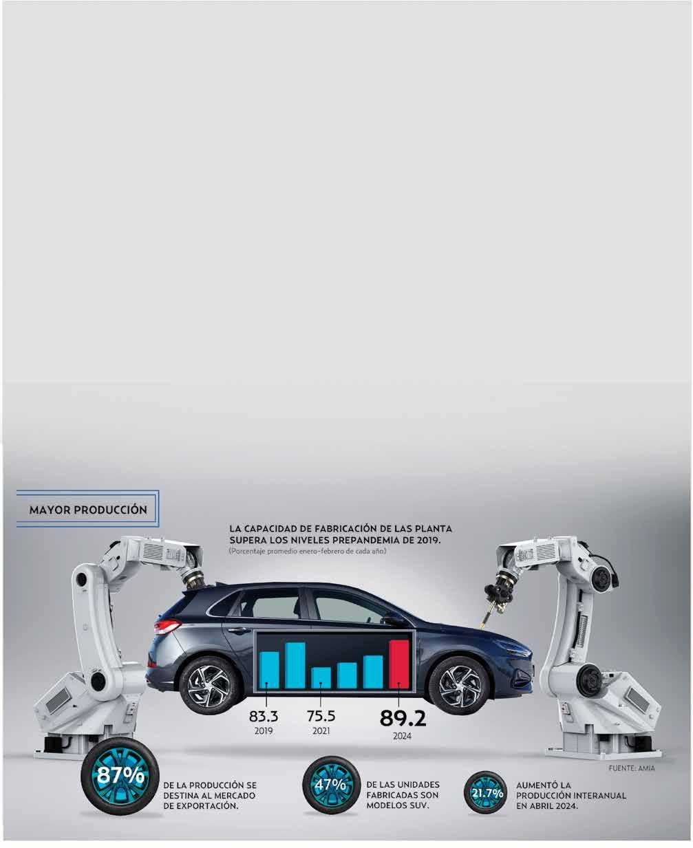La Industria Nacional de Autopartes (INA) anunció que México continúa alcanzando récords históricos de producción mes tras mes, explicando que en febrero de 2024 el valor de producción superó los 10 mil 300 millones de dólares, representando un aumento del 13.15 por ciento en la producción en comparación con febrero de 2023, y un incremento del 11.12 por ciento con relación al primer bimestre de ese año.
