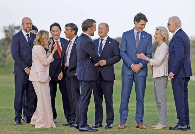 de la cumbre del G7 que se está celebrando en el sur de Italia. Meloni había invitado al presidente Zelenski a unirse a una sesión especial dedicada a la guerra de Ucrania, en presencia de los líderes: de EU, Joe Biden; de Francia, Emmanuel Macron; de Alemania, Olaf Scholz; de Canadá, Justin Trudeau; de Japón, Fumio Kishida y de Reino Unido, Rishi Sunak.