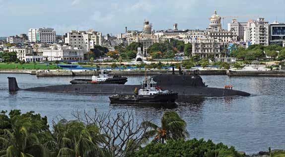 l El submarino de propulsión nuclear ruso Kazan abandonó ayer el puerto de La Habana, donde permaneció 5 días anclado a la vista de los habaneros, mientras que un sumergible de EU nuclear llegó el jueves a la base naval de Guantánamo. La visita a la isla se da en medio de tensiones por Ucrania. AFP