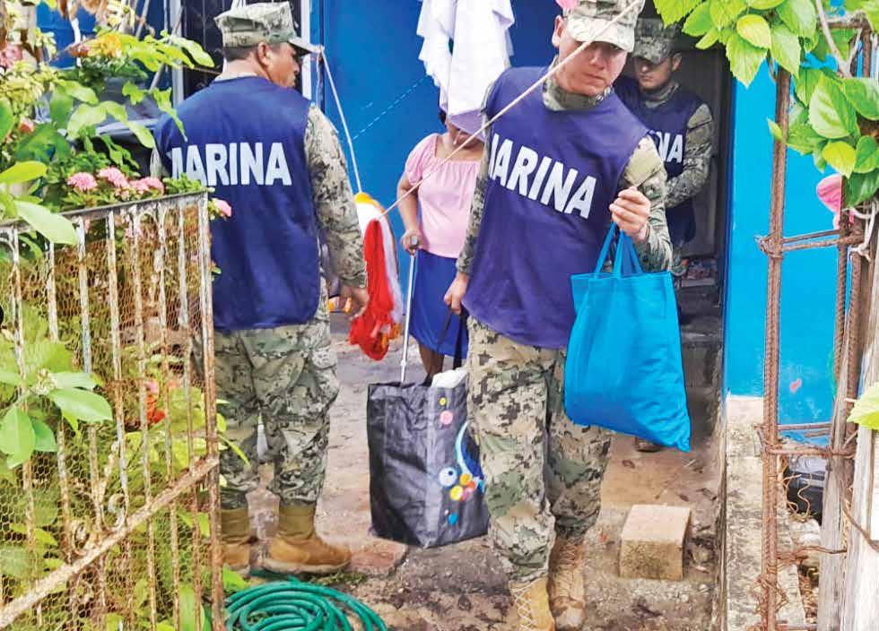 BRIGADAS. Marina, Sedena, Guardia Nacional y Protección Civil también apoyan en la entrega de alimentos y enseres.