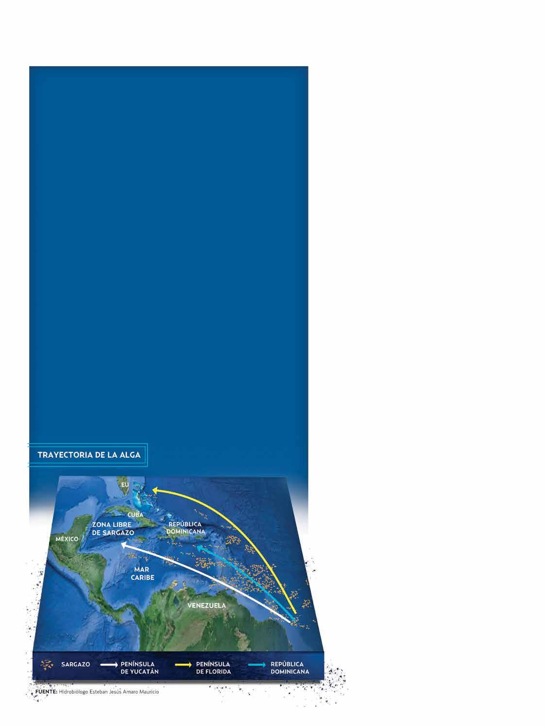 Cabe recordar que el sargazo puede alcanzar grandes extensiones y se desplaza por temporadas hacia el Caribe Mexicano. El alga cumple con importantes funciones para el equilibrio ecológico de los océanos, pero una vez que llega a la costa empieza su descomposición, por lo que en grandes cantidades puede ser tóxico