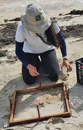 ● DATO. Se toman muestras de la arena en Punta Sur para hallar microplásticos.