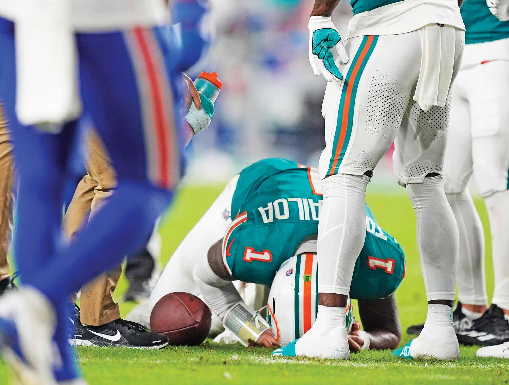 El quarterback de los Dolphins, Tua Tagovailoa, tuvo ayer una noche de pesadilla, al sufrir una conmoción cerebral que lo obligó a abandonar el partido. Antes, además, fue interceptado tres veces, en la derrota de su equipo ante los Bills (31-10), en el comienzo de la Semana 2 de la NFL en el Hard Rock Stadium.