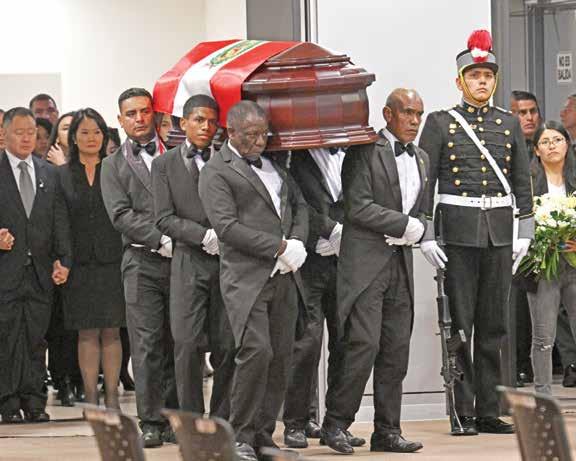 El ataúd con los restos del expresidente peruano Alberto Fujimori —condenado por el asesinato de 25 peruanos y luego indultado— ingresó ayer a una sala del Ministerio de Cultura llevado por seis cargadores, donde una multitud lo recibió junto al primer ministro Gustavo Adrianzén. Antes había sido trasladado en una carroza que avanzó rodeada de policías antimotines así como de unos 80 seguidores. Su hija mayor Keiko, de 49 años, y el menor, Kenji, de 44, que en los últimos años mantuvieron una encarnizada disputa política que llevó al menor a una condena por corrupción, siguieron al féretro tomados de la mano ambos vestidos de negro.