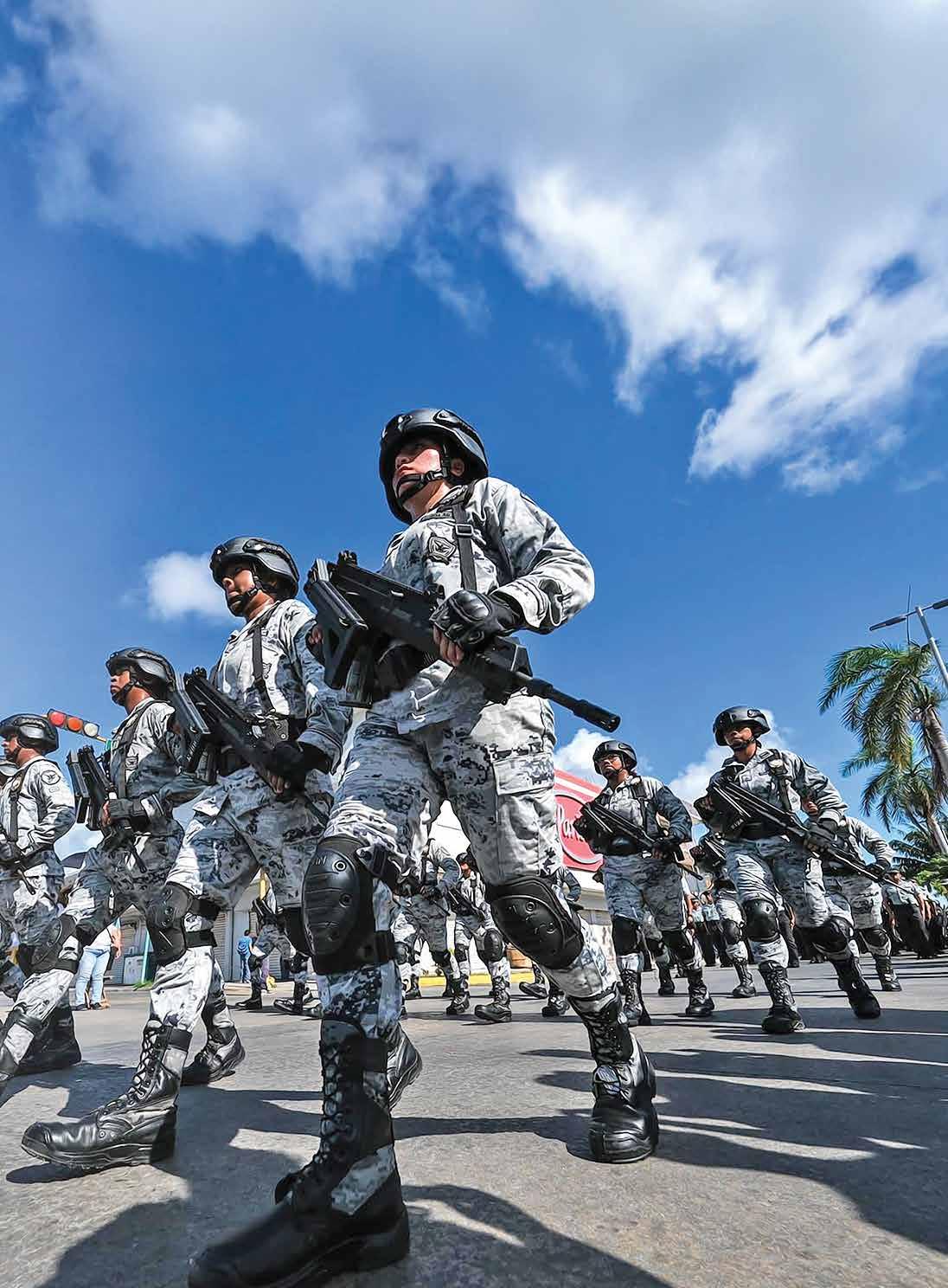 ● SEGURIDAD. Patrullas de la Guardia Nacional hicieron gala de su presencia ayer en el desfile cívico-militar.