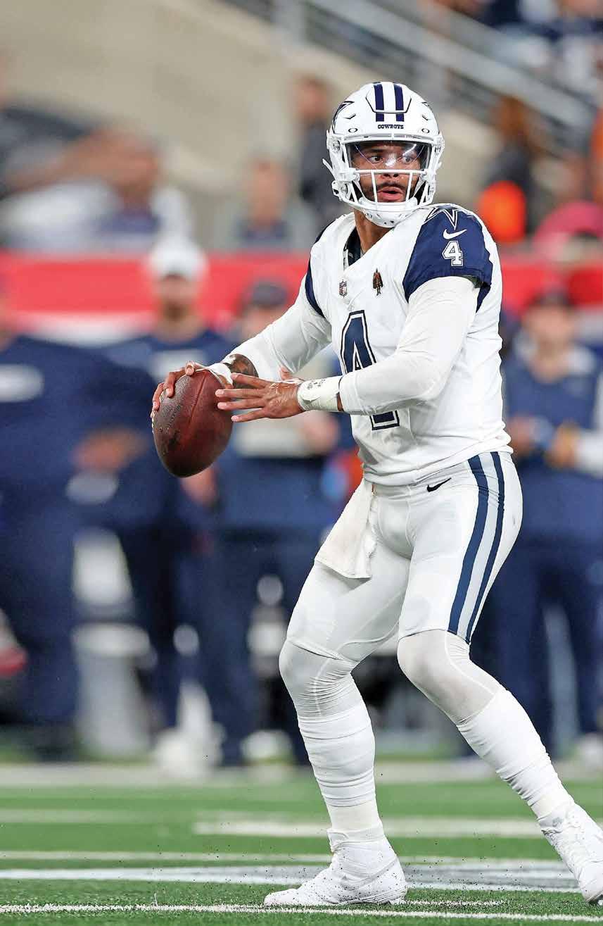 Prescott, quien ha ganado sus últimos 13 duelos de inicio ante Nueva York, completó un pase pantalla de 15 yardas con el corredor Rico Dowdle, para un touchdown que dio la ventaja a Dallas en el primer cuarto.