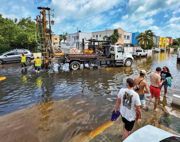 Con este panorama, la gobernadora Mara Lezama Espinosa recorrió las colonias Donceles, Lombardo Toledano y Bahía Azul, de Cancún, en donde escuchó a habitantes y supervisó las acciones de achique de zonas anegadas, de limpieza de árboles, ca-