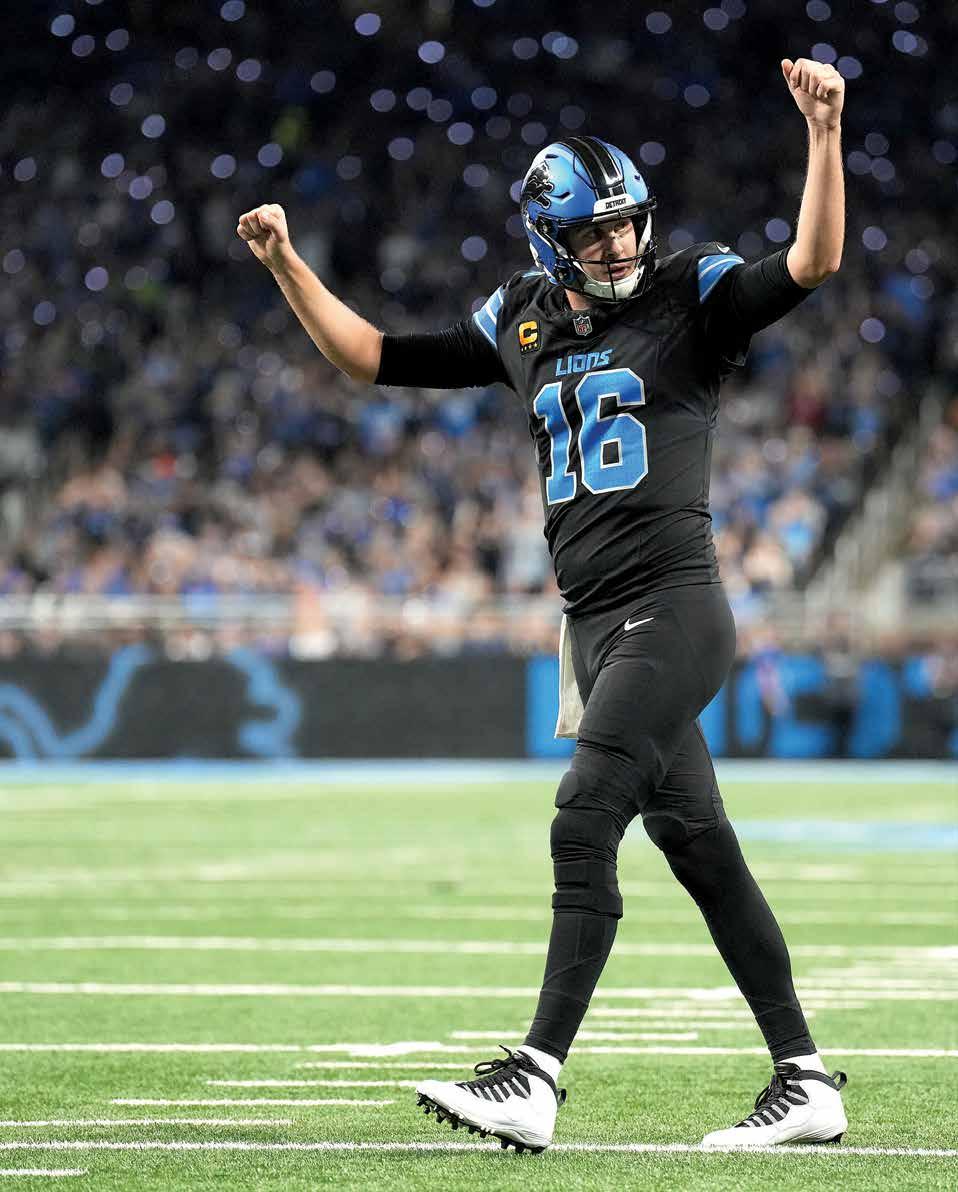Además, rozó las 300 yardas por la vía aérea (292). Goff también tuvo una recepción para touchdown por primera vez en su carrera, al capturar un pase de Amon-Ra St. Brown, y lanzó uno de sus dos pases de anotación para el receptor All-Pro. Goff y St. Brown son el octavo dúo en la historia de la liga en lanzar y capturar una anotación de cada uno.
