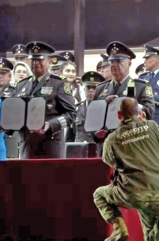 ● En el caso de Sedena, se coloca el tocado de cuatro estrellas a Ricardo Trevilla.