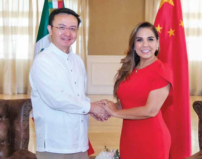a gobernadora Mara Lezama Espinosa sostuvo una reunión con el embajador de la República Popular China en México, Zhang Run, a fin de fortalecer las relaciones diplomáticas e incentivar la atracción de turismo e inversiones a los destinos de Quintana Roo. Durante este encuentro, la mandataria explicó al embajador y comitiva los alcances de la Nueva Era de la Transformación en QRoo, del Nuevo Acuerdo por el Bienestar y Desarrollo que tiene a las personas en el centro de las acciones.