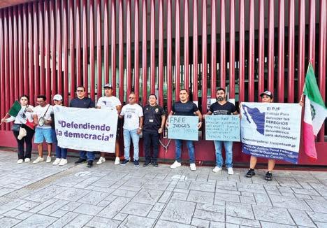 › Muy interrumpido estuvo el tráfico en la zona hotelera, pues trabajadores del PJ se manifestaron en las oficinas del Consulado de EU y de la Secretaría de Relaciones Exteriores. Isaac Chi Flores, secretario general del Sindicato de Trabajadores del PJF, dijo que estas acciones son respuesta a la tómbola de insaculación que afecta a la carrera judicial.