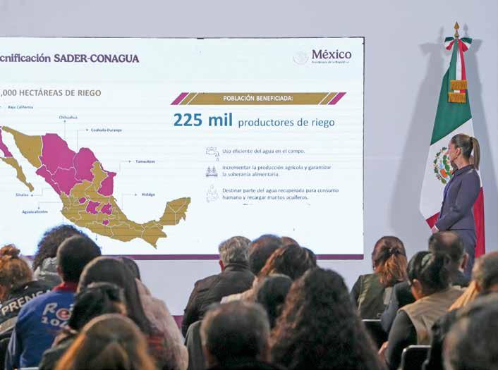 l presentar el Plan Nacional Hídrico 20242030, en donde se reconoce al agua como un derecho, la presidenta Claudia Sheinbaum Pardo enfatizó que se pondrá orden en las concesiones, ya que “hay usuarios que tienen alguna, pero no la usan y en algunos casos hasta la venden”. Así, se recuperará este recurso hídrico como un bien de la nación; se disminuirá la sobreexplotación con un uso principalmente para consumo humano; la creación del Registro Nacional de Agua para el Bienestar; se tendrá un Programa Nacional de Tecnificación para 200 mil hectáreas de riego; implementar un plan maestro en la materia; 16 proyectos hídricos estratégicos; y el saneamiento principalmente de tres ríos: Río Lerma Santiago, Atoyac y Tula. La inversión del Gobierno de