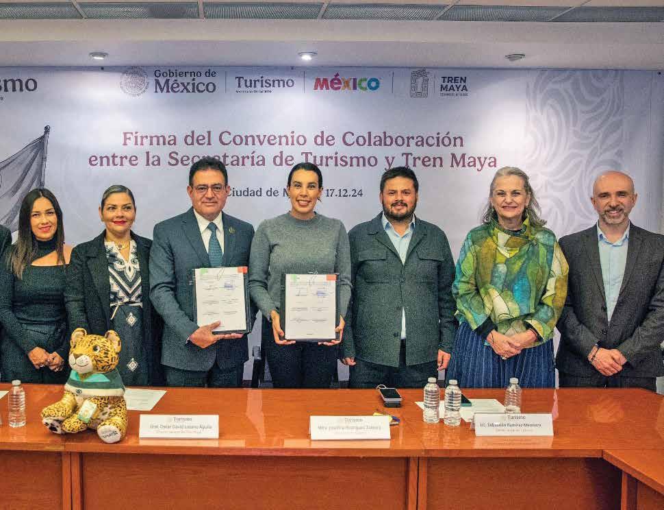› Convenio de colaboración firmaron la secretaria de Turismo, Josefina Rodríguez Zamora, y el director general del Tren Maya, General Óscar David Lozano Águila. Buscan consolidar el potencial turístico de la obra de mil 500 kilómetros, por lo que sumarán esfuerzos para su desarrollo. Por cierto, se informó que se duplicó la venta de boletos.