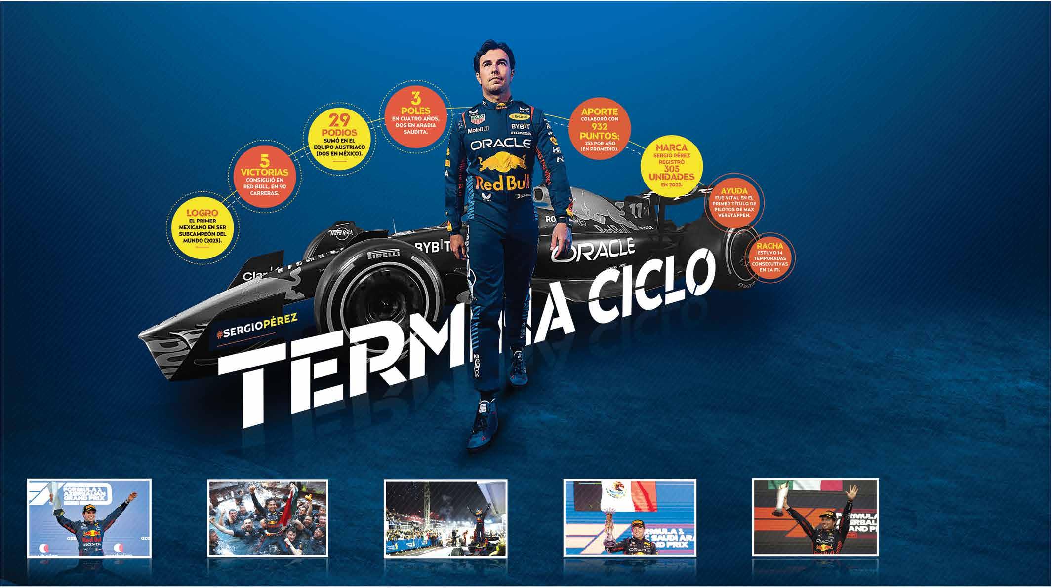 El piloto mexicano Sergio Pérez y Red Bull anunciaron el término de su vínculo profesional, tras cuatro campañas, donde fue subcampeón del mundo (en 2023) y doble campeón de constructores.