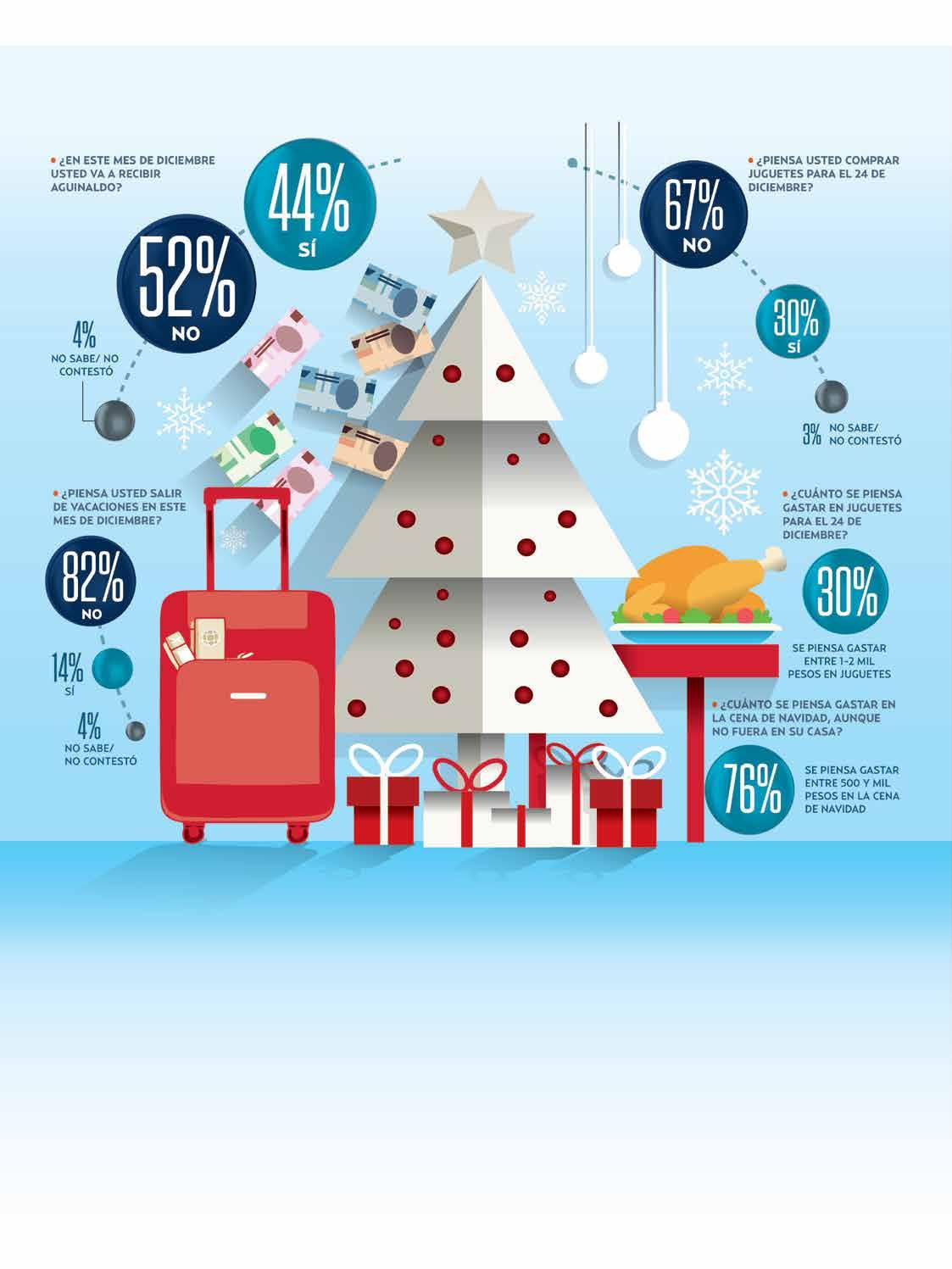A la pregunta de: “¿En este mes de diciembre usted va a recibir aguinaldo?”, 44 por ciento contestó que “sí”; 52 por ciento, “no”; y 4 por ciento, “no sabe/ no contestó”.