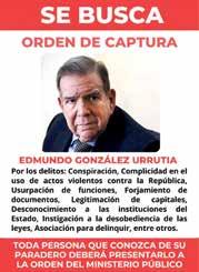 "Se busca. Orden de captura. Recompensa: 100 mil", dice un cartel publicado en redes sociales por la policía científica con la foto de González Urrutia. España le otorgó asilo político a González Urrutia, acusado por la Fiscalía venezolana de delitos como "conspiración" y "asociación para delinquir".