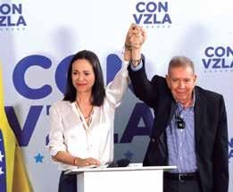 cia constitucional para abrogar este conflicto. Aquí quien tiene la obligación de presentar en 48 horas las actas y presentar los resultados es el Consejo Nacional Electoral", sentenció. Finalmente, la líder de la oposición venezolana aseguró que la mediación de países neutrales al conflicto es fundamental para que Maduro reconozca la derrota. Mientras tanto, el presidente Andrés Manuel López Obrador mencionó ayer que "nadie se puede auto proclamar victorioso" hasta que no haya una declaración oficial del Tribunal Electoral.