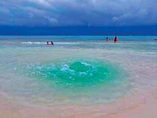 l Las fuertes lluvias de los días recientes provocaron la aparición de un ojo de agua en Playa del Carmen, en la costa de las calles 10 y 12, ya que por debajo se encuentra un conducto de ríos subterráneos. El exceso de agua que se acumula en la zona busca una salida, lo cual da origen a este fenómeno natural.