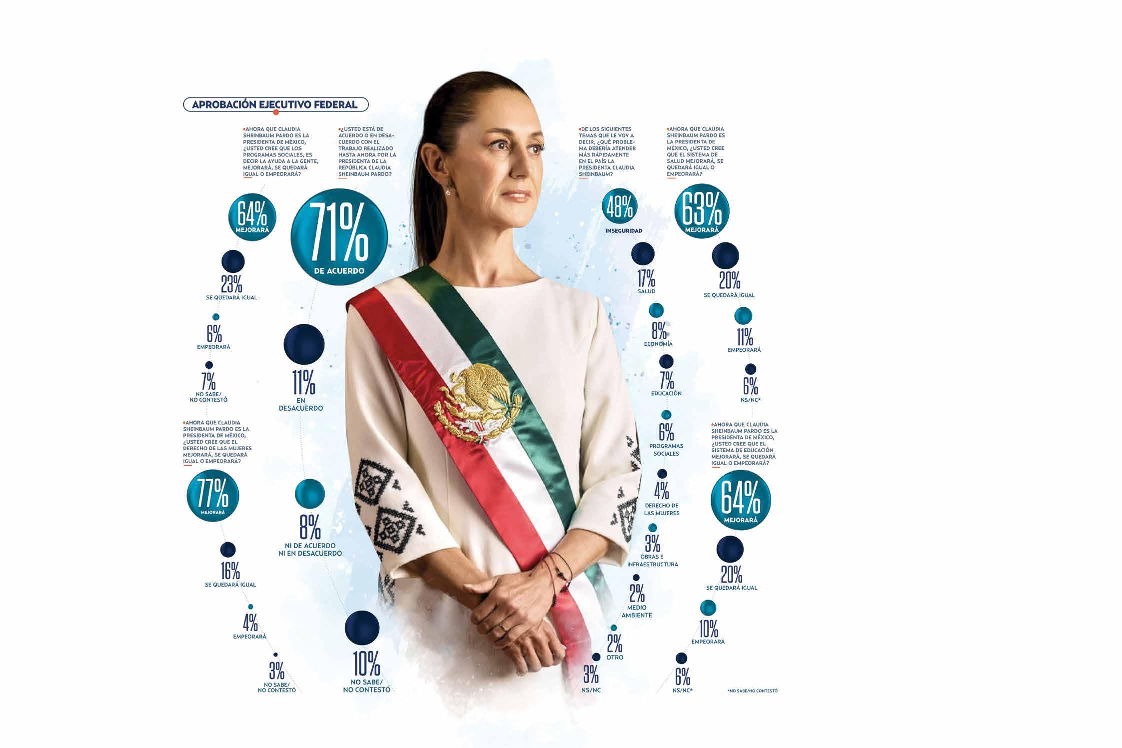 A tres meses de la llegada de Claudia Sheinbaum Pardo a la Presidencia de México, la mayoría de los encuestados está de acuerdo con el trabajo realizado por ella en el Gobierno y tiene altas expectativas de mejora en diferentes rubros, de acuerdo con la encuesta de QM Estudios de Opinión, en alianza con Heraldo Media Group