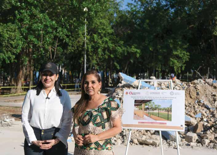 ● La gobernadora Mara Lezama y la alcaldesa de Solidaridad, Estefanía Mercado, presentaron un proyecto de rehabilitación del 2º parque de Villas del Sol, para dar espacios dignos a 45 mil vecinos, con una inversión de 17 millones de pesos para canchas, ejercitadores, teatro, juegos infantiles y jardineras. REDACCIÓN NUEVO ROSTRO A PARQUE