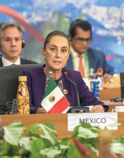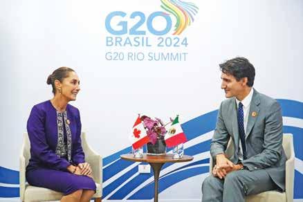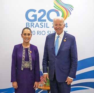 › En alto puso el nombre de México la presidenta Claudia Sheinbaum durante su participación en el G20. Además de promover el programa Sembrando Vida, sostuvo una decena de reuniones bilaterales con mandatarios y jefes de estado como Joe Biden, de EU; Justin Trudeau, de Canadá; Luiz Inácio Lula, anfitrión y presidente de Brasil; así como con el chileno Gabriel Boric, quien la puso de ejemplo tras su aportación en la Cumbre y los programas sociales que impulsa.