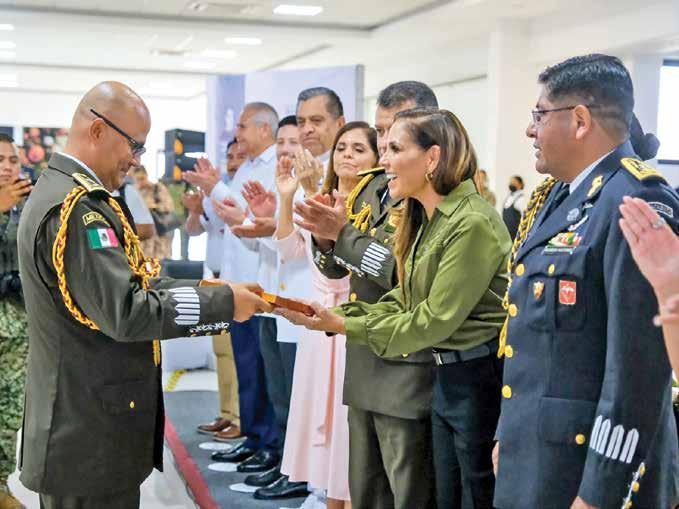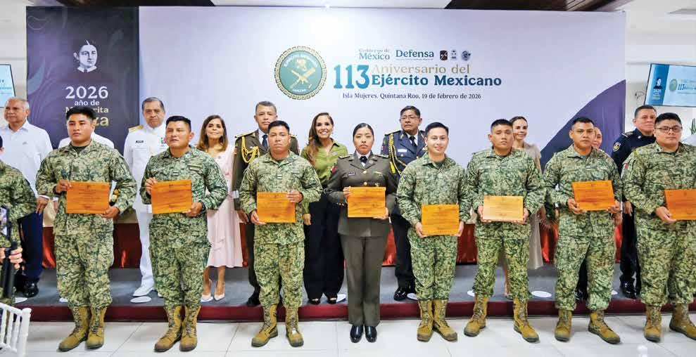 l En el marco de la celebración del 113 Aniversario del Ejército Mexicano, realizado en Isla Mujeres, la gobernadora Mara Lezama reconoció la labor de elementos de las Fuerzas Armadas por dar seguridad al estado, pero sobre todo por su ayuda en obras como el Tren Maya y el Aeropuerto de Tulum. REDACCIÓN