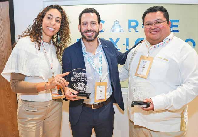 ● El alcalde de Cozumel, José Luis Chacón, y Beatriz Tinajero, directora de Hotel B, acompañados por Bernardo Cueto, secretario de Turismo estatal , recibieron dos premios de TripAdvisor por la playa El Cielito y la Isla de la Pasión en Cozumel VÍCTOR HERNÁNDEZ