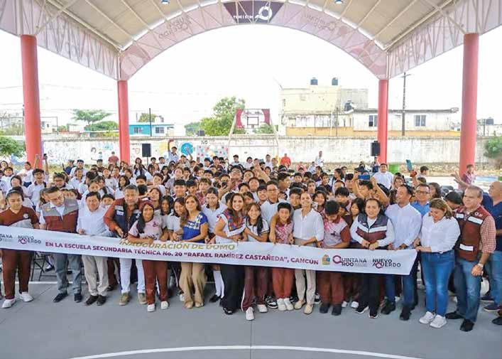 ● La gobernadora Mara Lezama inauguró el domo de la Secundaria Técnica No. 20 “Rafael Ramírez Castañeda”, en Cancún, colegio que cumplió 30 años de servicio. El domo beneficiará a 950 alumnos de los turnos matutino y vespertino. Al acto asisitió Ana Paty Peralta, alcaldesa de Benito Juárez. REDACCIÓN ERIGEN DOMO ESCOLAR