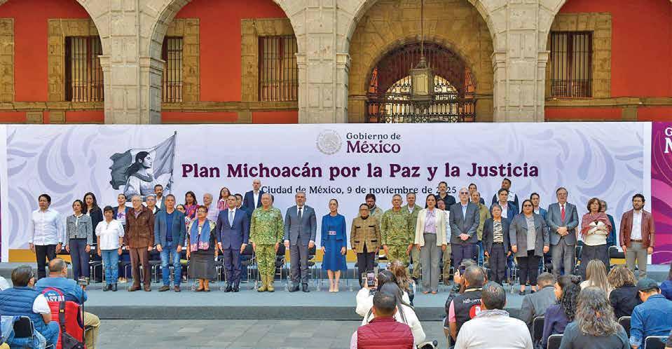 › Con una inversión de 57 mil mdp es que la presidenta Claudia Sheinbaum sienta las bases para que Michoacán viva en paz a través de un plan coordinado entre el Gabinete de Seguridad y de Bienestar. La titular del Ejecutivo aseguró que la seguridad y la paz son fruto de la justicia. “Nunca traicionaremos la confianza de la gente”, dijo.