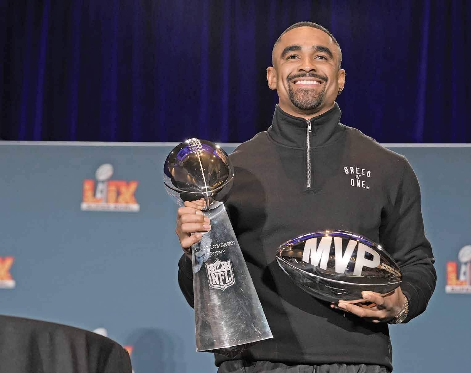 NUEVA ORLEANS. Dos años después de la derrota contra los Chiefs, en Arizona, Jalen Hurts comandó el domingo el triunfo de los Eagles de Philadelphia, en la edición LIX del Super Bowl, donde fue nombrado Jugador Más Valioso en el Caesars Superdome. El mariscal de campo, quien se fotografió con ambos trofeos (Vince Lombardi y Pete Rozelle), valoró la conquista del título y de dicho premio, una consecuencia del trabajo y de una filosofía que no se concentra en la consecución de objetivos, sino en el crecimiento personal continuo.