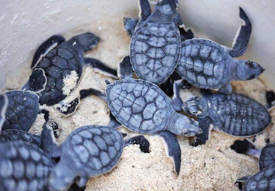 l Entre ellas están la tortuga laúd, verde, caguama, y carey.