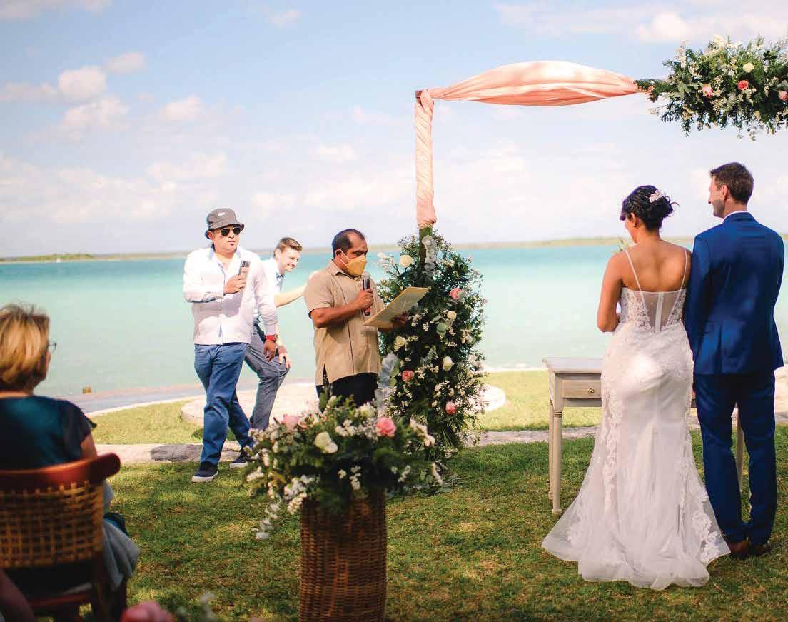 Las bodas pueden realizarse en la orilla de la laguna, en jardines o incluso a bordo de pontones que navegan por las aguas cristalinas de Bacalar