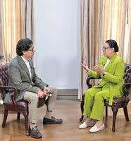 l PLÁTICA. Alfredo González Castro, director editorial de HMG, y la titular de la Segob.