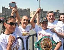 l ORGULLO. Claudia Sheinbaum y Mauricio Sulaimán se retrataron con campeonas mexicanas.