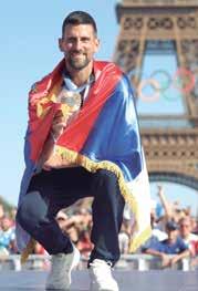 El serbio Novak Djokovic celebró en la emblemática Torre Eiffel, luego de conquistar el oro olímpico, el único título que no había ganado. REDACCIÓN