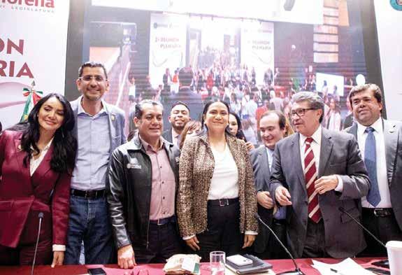 › Convocatoria a la unidad en torno a la 4T lanzó la dirigente nacional de Morena, Luisa María Alcalde, al participar en la plenaria de los diputados federales de su partido. Les pidió mantener la defensa de la soberanía nacional y les agradeció los logros en la aprobación de reformas en materia de programas sociales y del Poder Judicial.