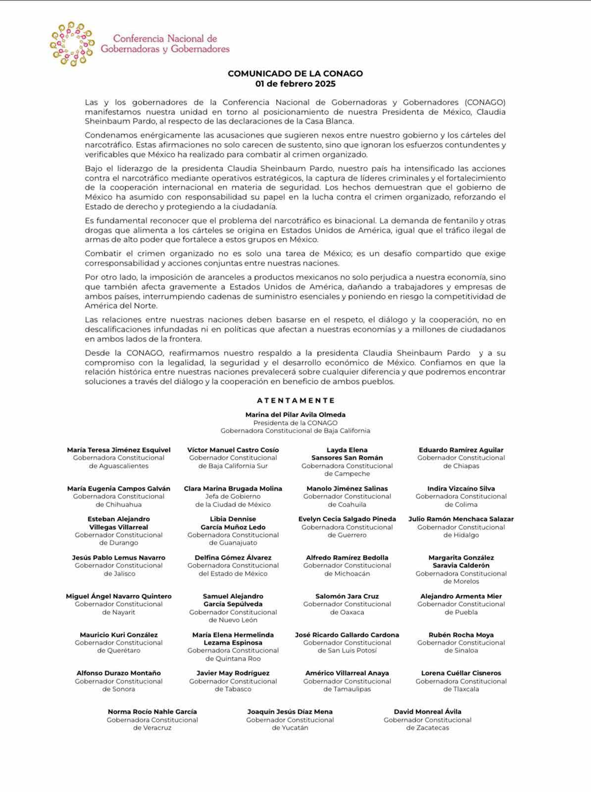 Desde los grupos parlamentarios de Morena, Partido Verde Ecologista de México y Partido del Trabajo en el Senado de la República condenamos enérgicamente la imposición irracional y unilateral de aranceles a nuestro país por parte del gobierno de Estados Unidos. Además, rechazamos categóricamente las calumnias vertidas desde la Casa Blanca que pretenden vincular al Gobierno de México con organizaciones criminales, utilizando de manera injusta, indeseable y malintencionada una problemática internacional como estrategia de negociación comercial.