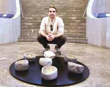en mármol que permanecen debajo de la bóveda del MAM, un trabajo con el que busca generar una conversación con el espacio diseñado por el arquitecto Pedro Ramírez Vázquez, además, de una vitrina con sus obras pasadas.