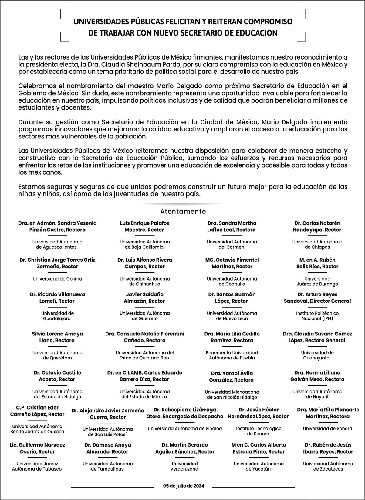 › Trabajo de la mano con universidades del país ofreció el próximo titular de la SEP, Mario Delgado El todavía dirigente de Morena respondió a la felicitación que le extendió un grupo de instituciones de nivel superior: “trabajaremos de la mano y en coordinación para continuar con la transformación del modelo educativo de nuestro país”.